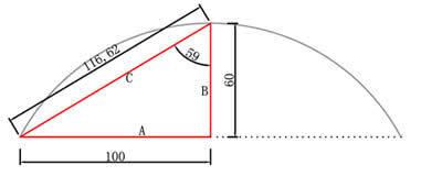 ③弦高弦长构成三角形 边长即为 a=100 b=60 根据勾股定理计算c边长 勾股定理公式:a平方+b平方=c平方 即:c=116.62