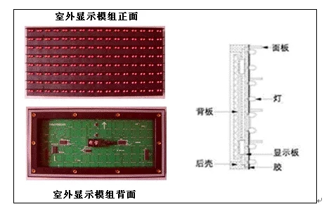 上图为16x8(2红)的室外屏模组。加了防水结构用于全户外,我们可以看到塑料壳体,最右侧是它的整个结构刨图:显示板上插的是灯珠、背板上是显示驱动电路,这是分体结构的,也有的是将显示板和显示驱动电路做在一块电路板上的整体结构的,下面的两个图我们可以看到区别。面板、后壳其实是一个塑料罩壳,面板上对应灯珠位置开有孔,以使灯珠漏出头,后壳上有用于安装的螺丝孔或磁柱,使模块便于组装。模块的前面灌有显示屏专用的防水胶。