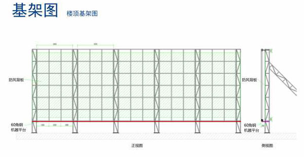 应把支架背面,用铁板全部封闭,以免背后透光,影响画面效果。