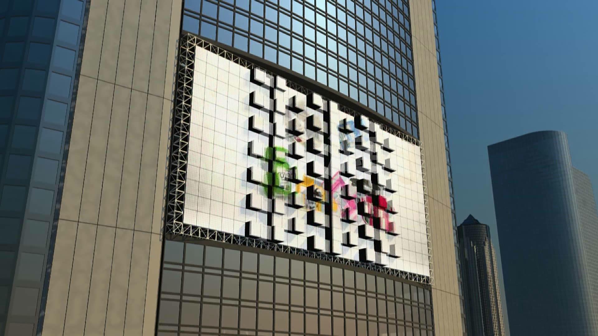 洪海光电集团研发会跳舞的led显示屏,led升降屏,将整个led全彩显示屏分割成几百上千个方格型子机,整个led显示屏箱体内由一台微型数控电机驱动,推动导杆使方柱体按照电脑编制的程序先后时差向前凸起----落下----自动换画;每次凸起---落下一个循环都会更换一幅画面,一般设定8-18种翻动花样,也可以更多。节目中晶莹剔透的箱体在地面上此起波伏。我们将这种效果运用到墙体上,楼顶、高炮,给您的城市带来十足的动感。使人民驻足观望,流连忘放。