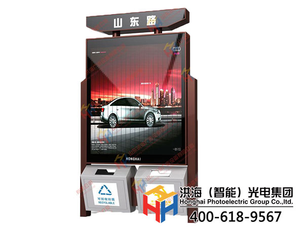 洪海新款的多功能广告垃圾箱,既实用又美观,这些公共设施的完善,让城市的环境卫生更整洁的同时,又提高了大家的环保意识和文明意识。分类垃圾箱让市民自觉的将垃圾进行分类投放,这不但减轻了清洁人员的工作量,还让市民认识到将垃圾进行分类的重要性。提升城市形象的同时,还能为城市增添一道动态的风景,还能助力城市亮化。多功能广告垃圾箱让城市多一道靓丽风景